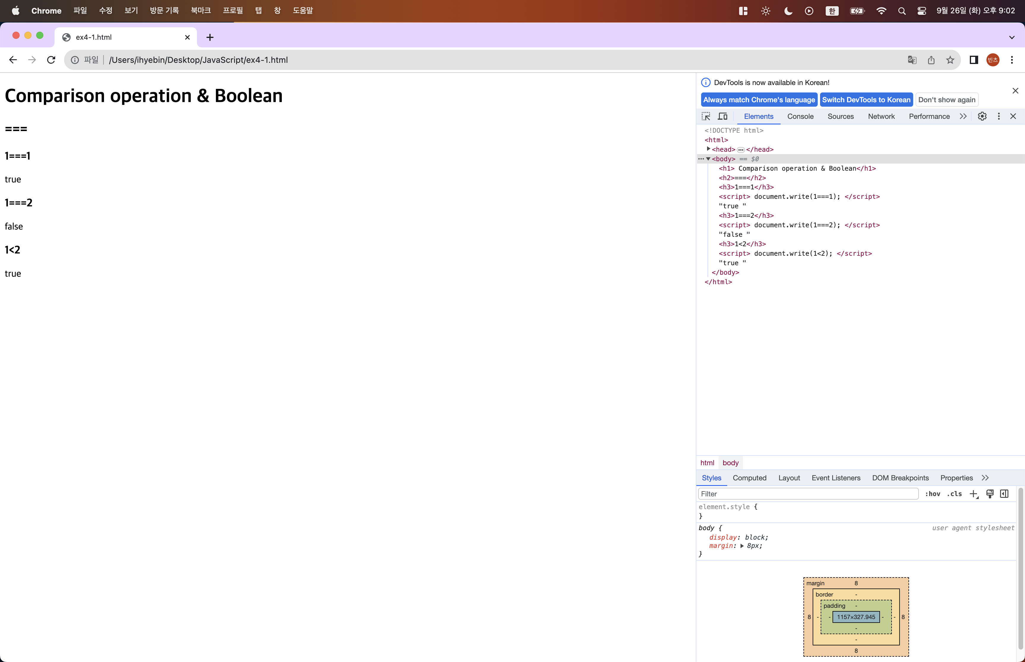 JavaScript 15 comparison operation & Bolean (비교연산자와 불리언) 본문