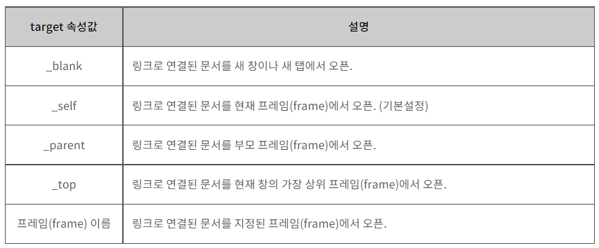 target 속성 : 링크로 연결된 문서를 어디에서 열지 명시