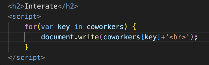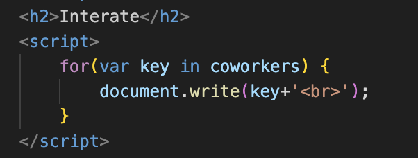 for은 쓰면 coworkers라는 변수가 가리키는 객체에 있는 key값들을 가져오는 반복문.