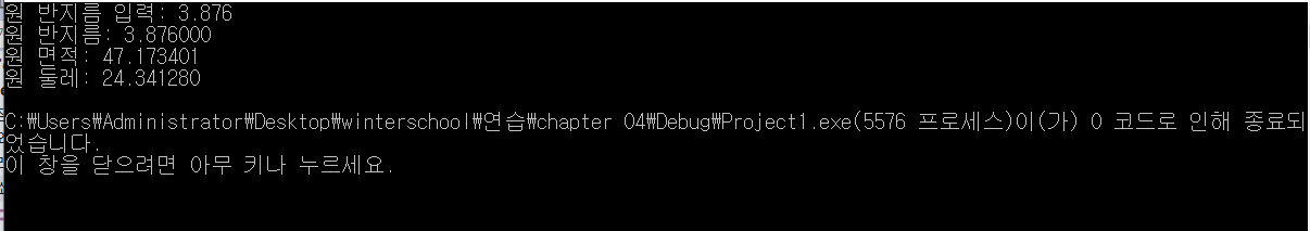 printf("원 반지름 입력: ");