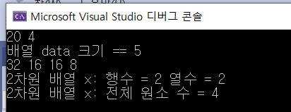 printf("배열 data 크기 == %d\n", (int)(sizeof(data) / sizeof(data[0])));
