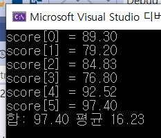printf("합: %.2lf 평균 %.2lf\n", sum, sum / SIZE);