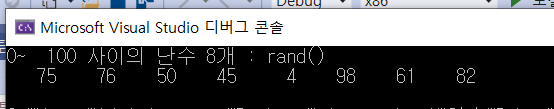 printf("0~%5d 사이의 난수 8개 : rand()\n", RAND_MAX);