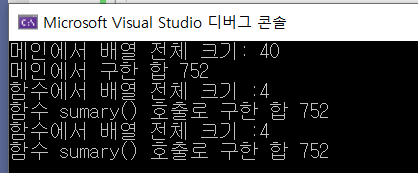 printf("함수 sumary() 호출로 구한 합 %d\n", sumary(&point[0], aryLength));