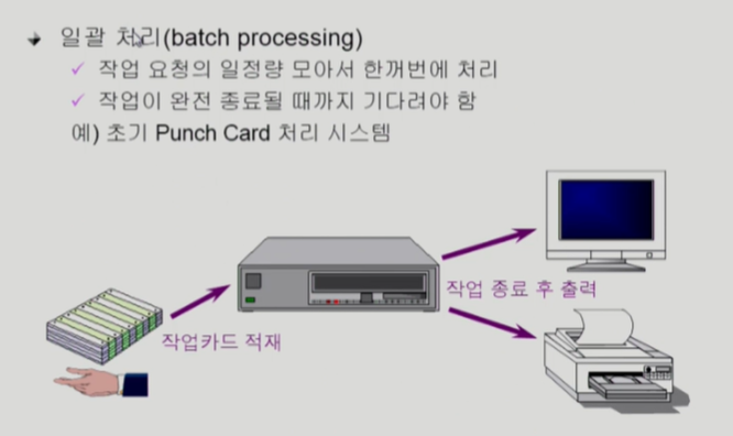 단일작업은 설계하기 쉬움. ex) 마이크로소프트 도스, 특수목적으로 제작된 기계의 운영체제(ex 엘리베이터)
