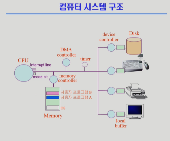 만약 인터럽트가 들어오면 CPU는 하던 거를 멈추고 CPU제어권이 운영체제로 넘어감.