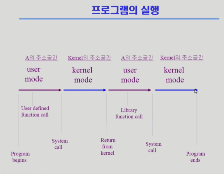 시스템 콜을 하면 운영체제 커널안의 주소공간이 실행됨