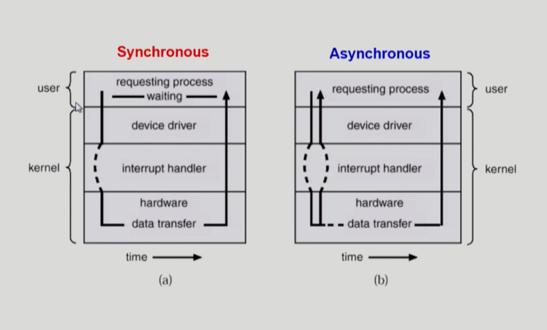asynchronous I/O : 일 던져놓고(요청만 하고) 바로 CPU 얻어와서 다른 일 하는 것